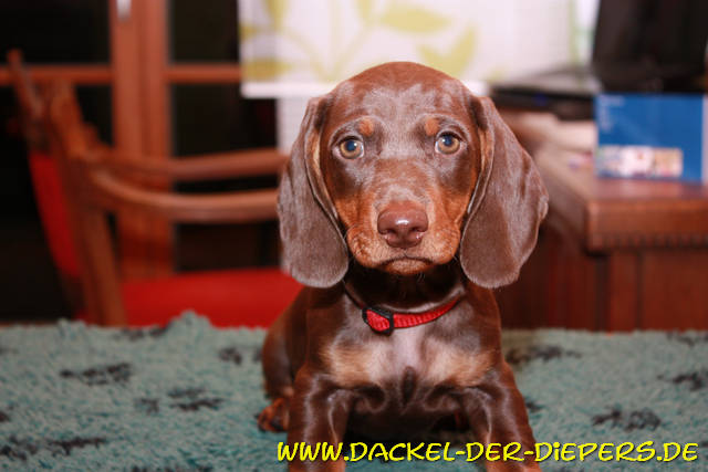 TOPab dem 10.02.2014 Wieder ist ein Meilenstein geschafft. Am Montag war der Zuchtwart da und hat sich den Wurf genau angesehen. Wir fassen zusammen: er war begeistert, ein wunderschöner fehlerfreier Wurf ohne Beobachtungen. Demzufolge ist jetzt der Antrag auf die Papiere, die Ahnentafeln beim DTK1888 e.V. gestellt. Diese erwarten wir in Kürze Dafür mussten jetzt auch die Namen offiziel erteilt werden. Hier kämpft die kleine Gianna mit ihrer Mama Emma und Nanny Disney ![]() ![]() George bekam wieder Besuch. George wird von seinen Dosenöffnern in Zukunft Ferdinand oder kurz "Ferdi" gerufen ![]() Emma schmust sich auch noch dazu - Besuch ist toll! ![]() Bobby ![]() ![]() Auch draussen im Garten werden die Spielchen immer toller. Die Zeiten, immer nur wieder nach drinnen zu jammern, sind vorbei. ![]() Wenn die Sonne scheint, ist es aber auch einfach nur toll draussen ![]() ![]() ![]() ![]() ![]() Gaudi - unverkennbar sein verschmitztes Gesichtchen ![]() Gianna und Ghana ![]() Gianna ![]() Ghana ![]() ![]() Ferdi und Gretel Gaia ![]() die wöchentlichen Portraits: (George) Ferdi ![]() ![]() ![]() ![]() Gianna (orange) "schon wieder diese Fototermine....." ![]() ![]() ![]() ![]() Gretel Gaia ![]() ![]() ![]() Ghana (grün) ![]() ![]() ![]() Glücksgretel ![]() ![]() ![]() Gaudi ![]() ![]() ![]() Bobby ![]() ![]() ![]() ---------------------- Es beginnen die Tage des Abholens, aber auch Spiele in der Sonne sind bei entsprechender Witterung draussen super Ferdi ![]() Gretel & Ferdi ![]() ![]() Glücksgretel ![]() Die kleine Gretel Gaia macht am Samstag den Anfang, genau 2 Monate nach der Geburt am 15.12.´13 Wir "Zieheltern" verabschieden uns. ![]() Letztes Gassi und Instruktionen mit Gretel ![]() Lulu und Gretel die beiden nähern sich schon toll an - das geht sicher gut! ![]() "ja, dich mag ich, ich geh schon mit mit euch" ![]() Zuvor lern ich noch das ganz wichtige Interieur der Wohnung kennen. Genau da oben finden die wichtigen Dinge für den Dackel statt. ![]() Mach´s gut, kleine "Gretel Gaia F." Wir sehen dich ja sícher wieder ![]() Herrli und Frauli von Gretel Gaia F. ![]() Gretel beschnüffelt ihre neue Gefährtin ![]() hier kommen schon Bilder vom neuen Zuhause ![]() ![]() Auf der Wiese ist viel Platz ![]() Lulu zeigt Gretel die Uraufgaben des Erdhundes ![]() Liebe geht auch bei Hunden durch den Magen, bei den Zwergenkönigen jedenfalls ganz ganz sicher.... ![]() ![]() Ist das nicht schööööön? ![]() Auch Ghana darf in ein neues Zuhause ziehen, nach Rosenheim. Ghana bekommt eine ganz liebe grosse Familie und die Farbe ´schokobraun´ hat dort noch eine ganz besondere Bedeutung..... ![]() ![]() ![]() ![]() Ghana ist für Lara eine grosse Überraschung ![]() ---- ![]() George Ferdi wird abgeholt Auch hier wurde unser kleiner Zwergenkönig mit grosser Spannung und Freude erwartet. Die erste Rückmeldung kam schon: alles ist gut! Ferdi wird schon nächste Woche seine Schwester Gretel Gaia wiedertreffen. Sie besuchen in München die selbe Welpenspielstunde. ![]() Alle Welpen aus unserem G-Wurf sind jetzt reserviert Wir danken wieder einmal all unseren Hundeeltern für ihr Vertrauen in uns und wünschen den Kleinen in ihrem neuen Zuhause ein langes, glückliches und gesundes Leben Nichts freut uns mehr, als hin und wieder einen Gruss oder ein Bild von unseren Schützlingen zu sehen - vielen Dank --------------------------- Wir machen jetzt eine Welpenpause, aber voraussichtlich nur ein paar Wochen. Nächste Woche "darf" unsere rote Hündin Disney "heiraten" Wenn alles klappt, erwarten wir kleine Osterhasen in den Farben rot und schwarz-rot. |