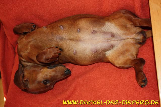 | 24.04.2014 Nun ist es soweit Rüde oder Hündin? Die Frage wird hier (Klick) erörtert Zehnte Woche ![]() KLICK Neunte Woche bis 29.06.2014 ![]() KLICK Achte Woche bis zum 22.06.2014 ![]() KLICK Siebte Woche bis 15.06.2014 ![]() KLICK Sechste Woche bis zum 08.06. ![]() KLICK Woche Nummer Fünf bis 01.06. ![]() KLICK 4. Woche bis 25.05. ![]() KLICK 3. Woche bis 18.05. ![]() KLICK Zweite Woche bis 10.05.14 ![]() KLICK Geburt und erste Woche ![]() KLICK 9. April 2014 Zwei Wochen sind noch eine lange Zeit. Disney hat jetzt nach 7 Wochen Trächtigkeit doch schon einen deutlichen Bauch bekommen und 1600g zugenommen. Die schwerste Zeit steht ihr noch bevor, aber es geht ihr gut. Um den 23.April herum erwarte wir rote und evtl. auch schwarz-rote Welpen. ![]() ![]() ![]() Februar 2014 Disney darf "heiraten" ![]()