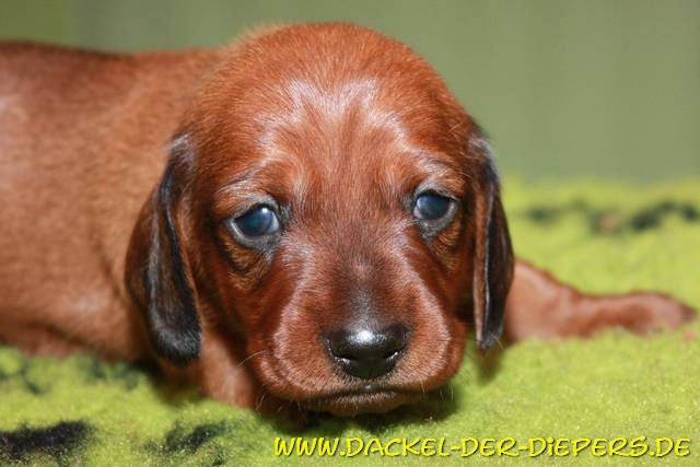 bis 10.05.14 Die Welpen machen sich gut. Wir sind sehr zufrieden. Noch ist alles ruhig und zufrieden in der Wurfkiste, viel mehr als Mama Disney brauchen sie noch nicht. Die Augen haben jetzt alle auf, einige schauen allerdings noch sehr verschlafen ins Leben. Alle Welpen tragen jetzt Halsbänder. Die dienen allerdings lediglich für unsere Homepagebesucher zur Unterscheidung. Auch wenn wir bereits viele Interessenten haben, wurde noch kein Welpe definitiv ausgesucht. Dafür waren sie bisher einfach noch zu klein. Aber der 4. Lebenswoche erwarten wir die ersten Besucher, die wir zum Teil schon kennen, einige aber auch erst kennenlernen. Daher gibt es vorläufige Reservierungen, aber fest reserviert ist ein Welpe erst nach gegenseitigen Kennenlernen und einer Anzahlung. ![]() schön kuschelig haben unsere Kleinen es und geniessen auch die gegenseitige Wärme ![]() ![]() ![]() ![]() Und nun die Einzelbilder: Unser Erstgeborener hat es Disney ja etwas schwer gemacht Mein erster Ausspruch, als er da war , war "als Hannibal über die Alpen kam" und deshalb heisst er jetzt so. "Hannibal" wiegt jetzt mit 2,5 Wochen 980g ![]() ![]() ![]() ![]() ![]() Die beiden Mädels, die jetzt kommen haben ein blaues und orangenes Band. Eine davon ist fest reserviert und wird Miss America BLAU 810g ![]() ![]() ![]() ![]() ![]() ![]() ![]() ![]() ![]() ![]() ORANGE, 730g ![]() ![]() ![]() ![]() ![]() ![]() ![]() ![]() ![]() "Hummel(chen)" 790g ![]() ![]() ![]() ![]() "wie langweilig" ![]() ![]() ![]() ![]() ![]() ![]() Rüde mit lila Band "Herby", 910g reserviert Herby ist der dunklere Rüde, sein feines weisses Strichlein an der Brust ist bereits fast weg. Von der Farbe wird es wohl so wie Disney, mit etwas Stichelhaar ![]() Herby schaut noch total verschlafen. Da müssen wir wohl auf das nächste Fotoshooting warten um von ihm einen wacheren Gesichtsausdruck zu bekommen. ![]() ![]() ![]() ![]() ![]() ![]() ![]() ![]() ![]() Rotes Band, Hündin 680g Da sie mit Abstand unsere Kleinste war und ist, fiel die Wahl des Namens schon sehr früh auf "Herzchen" ![]() ![]() ![]() ![]() ![]() ![]() ![]() ![]() Gruppenbilder die beiden schwarz-roten Mädels ![]() Hummel & Herzchen ![]() ![]() ![]() ![]() ![]() 2 Lakritzschneckchen ![]() die beiden roten Jungs Hannibal und Herby ![]() ![]() ![]() ![]() Hier sieht man sehr schön die unterschiedliche Färbung. Hannibal wird weitaus weniger dunkelstichig ![]() ![]() ![]() ![]() ![]() und die roten Mädels, bisher ohne Namen Miss Amerika bekommt sicher einen englischen Namen. Wir warten noch auf die Entscheidung der zukünftigen Besitzer. ![]() ![]() auch hier haben wir wieder eine hellere Hündin (orange) und eine dunklere (blau) ![]() ![]() ![]() links blau - rechts orange ![]() ![]() ![]() ![]() |