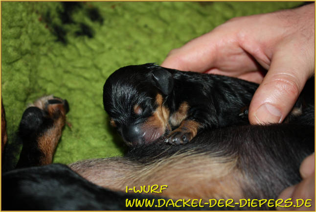 Karla hat uns noch in Ruhe Weihnachten feiern lassen. Nach deutlichen Vorzeichen wussten wir dann bald, dass es Sonntagskinder werden würden. Dass es sich dann aber doch sooo in die Länge zieht, hätten wir nicht geahnt. Sie hat unsere Geduld echt strapaziert und sich für jeden Welpen viel Zeit genommen. So hatten wir dann letztendlich innerhalb 9 Stunden 5 Welpen im Nest 3 Rüden und 2 Hündinnen, alle sind wohlauf und zielgerichtet zur Milchbar "marschiert". Anders als sonst duldete Karla noch lange die anderen Hündinnen und suchte sogar deren Kontakt. So wie hier, wo sie sich hinter Amica in die Kennelbox verzieht. An Wurfkiste war wieder mal nicht zu denken. Wir konnten froh sein, dass sie nicht wieder unter ein Bett oder Schrank schliefen wollte (bzw. gewollt hätte sie schon.....) Karla versteckt sich hinter Amica im Kennel und Disney passt auf ![]() hier schon mit Wehen...(hinten) ![]() 13.43 Uhr Der erste Welpe, ein Rüde mit 257g ![]() Disney und Emma in der eigentlichen Wurfkiste nebenan, die Aufpasser ![]() Amica ist auch gespannt, was da passiert ![]() ![]() 15.07 Uhr 2. Welpe, Hündin mit 240g ![]() 16.25 Uhr Nummer 3, eine Hündin mit 293g ![]() 19.25 Uhr Welpe Nr. 4, ein Rüde mit 271g "Hallo Welt" ![]() ![]() Die Welt hier draussen ist suuuuuper ![]() ![]() Nachdem wir glaubten, die Geburt sei vorbei, machten wir alles sauber und betteten die Kleinen endlich in die saubere und warme Wurfkiste. Beinahe zufällig zählten wir um 22.30 Uhr noch einen "älla bätsch" - ich bin auch noch da, einen Rüden mit 247g. Also waren es schlussendlich 3 Rüden und 2 Hündinnen Es ist der I-Wurf Unsere Welpeneltern dürfen normalerweise die Namen mit aussuchen (wobei ich eine Schmerzgrenze ;-) habe) Unsere Vorschläge wären: Iffi bzw Iphigenie, Ivy, India, Irmi, Isy.... Ike, Ingo, Ivo, Isidor... ![]() Ein kleiner Brackenfleck ![]() ----- 01.01.2015 ![]() Die Welpen haben farbige Bändchen bekommen. Die Mädels sind orange und lila. Sie sind beide bereits reserviert, aber noch nicht ausgesucht. Eine Hündin wird I´m Paula heissen, und das Mädel, das sich hier während der Aufzuchtzeit schon mehr an Reizangel und Futterschleppe orientiert, zieht zu einer netten Familie und darf dort auch Jagdhelfer werden. Die Jungs haben die Bänder in den Farben grün, grau und hellblau. ![]() ![]() ![]() ![]() ![]() ![]() ![]() Rüde ![]() ![]() ![]() ![]() ![]() ![]() Hündin ![]() ![]() ![]() ![]() Rüde, der Erstgeborene ![]() ![]() ![]() ![]() Rüde (hellblau) ![]() ![]() ![]() ![]() Hündin mit Brackenfleck ![]() ![]() ![]() ![]() ![]() ![]() ![]() Alle Welpen nehmen mittlerweile gut zu. Anfangs sind wir etwas an einer drohenenden Gesäugeentzündung vorbei geschrabbt. Karla hat immer sehr viel Milch. Da waren die 5 fast zu wenig, um das gleichmässig abzusüppeln. Mit regelmässigen Retterspitzumschlägen und etwas aus der homöopatischen Trickkiste haben wir das Ruder aber nochmal herumreissen können. Darüber sind wir heilfroh! |