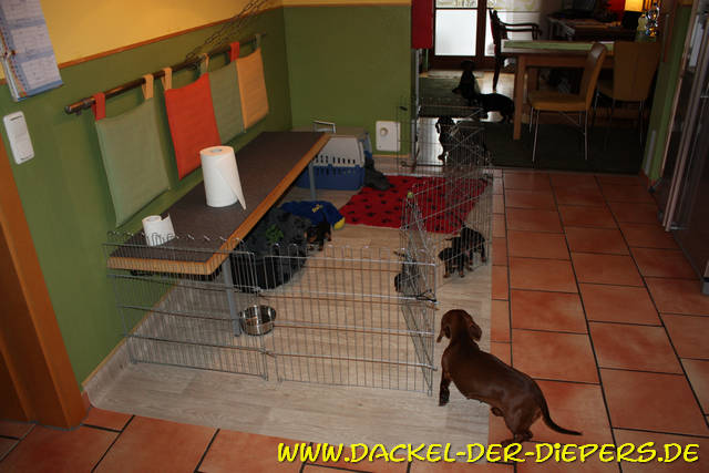 Endlich kam sie, die erste Mahlzeit Hundefutter Bissel Fleisch mit Ziegenmilch zu Brei verdünnt - lecker ![]() ![]() ![]() ![]() ![]() ![]() ![]() ![]() ![]() ![]() ![]() ![]() ![]() ![]() ![]() ![]() Zum Ende der 4. Woche wurde es dann Zeit, dass die Kleinen umziehen. Sie werden jetzt einfach munterer und brauchen Platz um sich weiter zu entwickeln. Da hiess es für uns mal wieder, dass wir die Küche räumen und dort das Welpengehege aufbauen. Anfangs sind sie noch recht vorsichtig, aber mit jedem Tag länger erobern sie die grosse Fläche und werden mehr und mehr zu spielenden kleinen Hunden. ![]() Auch der Kontakt zu den anderen Hündinnen wird jetzt intensiver Disney möchte natürlich wieder die Nanny sein, sie liebt die Welpen. ![]() Und auch die Mahlzeiten werden jetzt zur Regel und sind beliebt. Nachdem die Wachstumkurve mit ausschließlich Mamamilch dann zu Beginn der 4. Wochen deutlich stagnierte, machen jetzt alle wieder einen wahnsinns Schub und knuspern an der 1kg Marke. ![]() Und dann kam auch wieder Besuch Lisa mit einem Mädel auf dem Arm ![]() Und Sophie mit dem anderen ![]() ![]() |