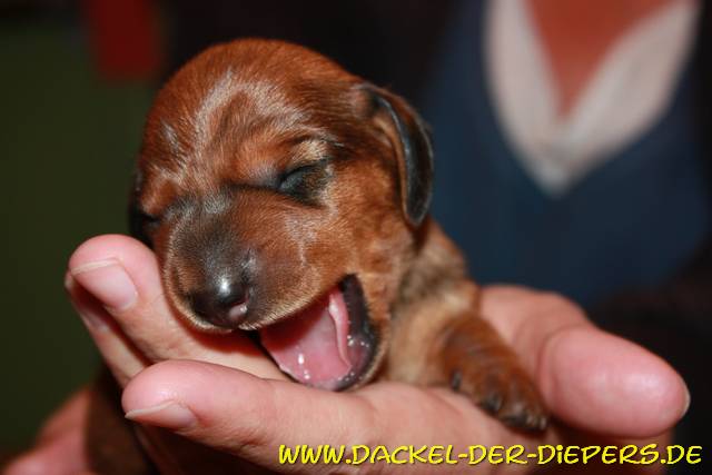 bis Sonntag 17.05.2015 Es ist doch erst "gerade" gewesen, dass wir unsere kleine Karla bei den Dombergspatzen abgeholt haben (2007). Da war Familie Möller auch bei ihrem K-Wurf. Und jetzt sind wir auch schon so weit. 11.Mai 2015 Heute morgen zu "ziviler" Zeit zwischen 9.00 und 12.00 Uhr hat uns Disney 4 Welpen ins Nest gelegt. Es ist ein schwarz-rotes Pärchen und ein rotes Pärchen. In Erinnerung an die Anfänge möchten wir nun das erstgeborene schwarz-rote Mädel auch Karla nennen. Der schwarz-rote Rüde, der als nächster seine 4 Pfötchen auf diese Welt setzte, ist der Kunibert - der Bertl´ und wird bereits sehnsüchtig erwartet. Das rote Mädel - Nr.3 wird die Vroni, wir werden sie wie Karlas Schwester Kenia nennen. Auch sie ist reserviert. Nr.4 ist ein roter Rüde und heisst vorerst Konsti. Die Geburtsgewichte lagen zwischen komfortablen 270 und 300g. Alle sind fit und kennen schon den Weg an die Milchbar. Disney ist wieder ganz stolze Mama, auch ihr geht es gut. Wir wünschen uns eine gesunde, schöne Aufzuchtzeit und nette Welpeneltern. -------------------------------- Der Vater Austin vom Kronprinzstein ![]() Die Mutter Disney von den Zwergenkönigen ![]() ![]() Hündin schwarz-rot, Klein-"Karla" ![]() ![]() ![]() ---------------------------------------------------------------------------------------------------------- rote Hündin Kenia/Vroni ![]() ![]() ![]() ![]() ---------------------------------------------------------------------------------------------------------- schwarz-roter Rüde Kunibert, der Bertl´ ![]() ![]() ![]() ![]() ------------------------------------------------------------------------------------------- roter Rüde Konsti ![]() ![]() ![]() ![]() ![]() ![]() ![]() ![]() ![]() |