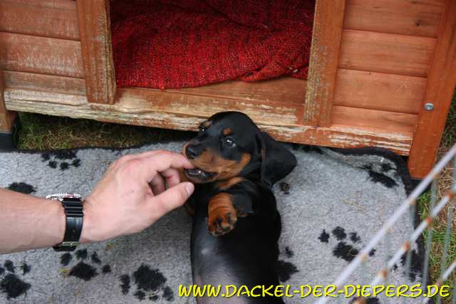 bis Sonntag 28.06.2015 Für die schwarz-rote Hündin Klein Karla suchen wir noch ein Zuhause Konsti hatte sehr netten Besuch und ist jetzt reserviert ![]() ![]() ![]() ![]() ![]() Bertl´ Wie kann es anders sein - sein Gesicht ist sehr markant und schon jetzt rüdentypisch Da er, wie immer wackeln und randalieren muss, gibt es diese Woche nur ein gelungenes Foto von ihm ![]() Vroni ein munteres liebes Mädel wie bei den Jungs sind in diesem Wurf die roten die etwas ruhigeren Charaktere ![]() ![]() ![]() ![]() Klein Karla Wie wir schon schrieben, sind die schwarz-roten in diesem Wurf deutlich die auffälligeren Welpen. Neugierig, mutig, lustig, wie man es von den Dackeln kennt.... ![]() ![]() ![]() Für diese Hündin suchen wir noch aktive Menschen, die ihr ein dackelgerechtes Leben bieten können. ------------------ Wir hatten mal wieder "Ehemaligentreffen" Emmas Schwester "Eike" Paula kam mit ihren Chaufeuren. Unsere Welpen sind immer ein toller Anlass für einen Besuch, wir freuen uns darüber sehr. Welpenkuscheln macht einfach immer Spaß und ein kleines bisschen Lust auf mehr Dackel Aber das geht nicht immer.... daher gilt unser Angebot: wann immer wir es einrichten können, sind Ehemalige herzlich willkommen ![]() Paula, unsere Brauntigerin ![]() ![]() Hmmm Schuhsenkel, ganz klasse ![]() ![]() ![]() ![]() ![]() ![]() Bertl´ ![]() ![]() Dackelblick inclusive.... ![]() ![]() uiiiii, ein Fremdhund keine Angst vor Paula ![]() ![]() ![]() ![]() nimmst du mich mal hoch, du grosser fremder Mensch? ![]() Konsti ![]() ![]() Bälle sind auch nicht schlecht ![]() ![]() ![]() Aber am schönsten ist immer noch das, was wir nicht dürfen ![]() ....genau... ![]() ![]() unsere roten "Sonnenkinder" sie leuchten immer so schön in der Sonne ![]() ![]() Gibts da was neues? ![]() Ringkämpfchen stehen an Platz 1 der Beschäftigung ![]() Wir tun nur aber nur so ![]() eigentlich können wir ja kein Wässerchen trüben... Klein Karla ![]() Lass mir was drin, Mama ![]() Der Besuch: Emmas Schwester Eike Paula ![]() |