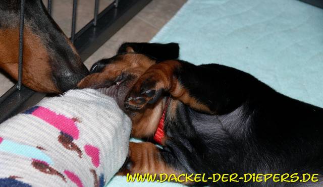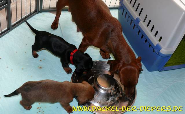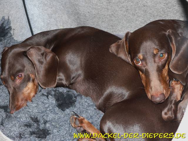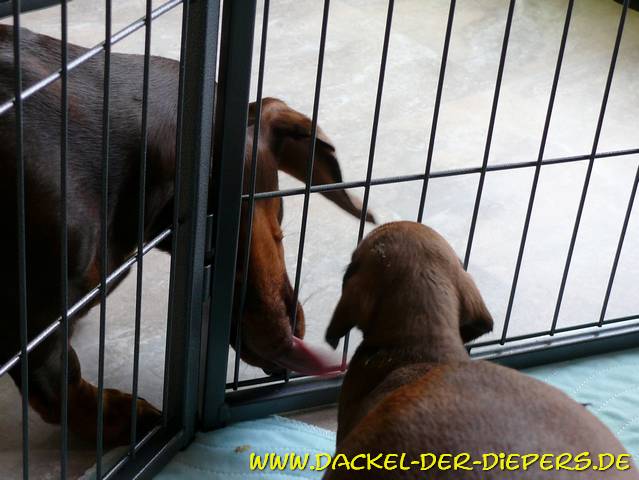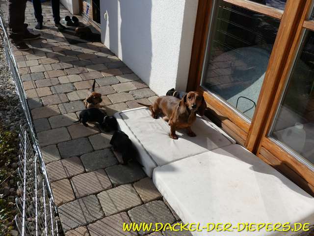 | Grosses Besuchswochenende 5 der 6 Welpen sind nun ausgesucht und haben Namen. Möhrchen, eine sehr temperamentvolle rote Hündin ist noch frei. Für sie suchen wir noch ein tolles Zuhause. Anfragen gern per email oder Telefon Portraits Mathilda,reserviert Mathilda ist von den schwarz-roten Hündinnen die ruhigste, oder besser ausgedrückt: die am wenigsten quirligste. Aber auch sie wird das Leben in ihrem neuen Zuhause nach Dackelwelpenart ordentlich auf den Kopf stellen. Aber als ersten Hund finde ich diese Wahl vernünftig. Sie zieht nach Niederbayern. ![]() ![]() Maika, reserviert Maika bleibt in der Nähe und wird Jagdhelferin Sie ist gewichts- und temperamentsmässig in der Mitte der 3 schwarz-roten Hündinnen. Sehr aufmerksam, aber trotzdem nicht an vorderster Front. ![]() ![]() ![]() Mia, reserviert Mia wurde bewusst als temperamentvolle, seeeehr selbstbewusste Hündin ausgesucht. Sie zieht auf ein grossen Gestüt und wird dort sicher Chefin über die vielen Reiterhunde. Als grosse Freundin steht ihr eine schon weise ältere Ridgebackhündin zur Seite. ![]() ![]() ![]() Möhrchen Sie ist neben Mia die wildeste im Wurf. Für sie wünschen wir uns ein Zuhause, entweder mit Dackelerfahrung, als Zweithund oder jemand, der sich ein wirklich munteres aktives Leben mit dieser Süßen vorstellen kann. ![]() ätsch..... dir werde ich zeigen, wie Dackel einen um die Pfote wickeln können ![]() Unschuldsblick ![]() ![]() ![]() ![]() ![]() Mephisto-Gustl, reserviert Gustl ist der Frauenversteher. Er überlässt im Moment in seinem Weiberrudel den Mädels das Zepter. Was aber nicht heisst, dass er langweilig ist. Gustl zieht nach München ![]() ![]() Miss America, reserviert Auf diese Hündin wird schon lange gewartet. Mal sehen wann sie dann die grosse Reise "über den Teich" antritt. Ihren Überseekoffer hat "Missi" bereits gepackt. Wir sind recht aufgeregt, denn es ist das erste Mal, dass einer unserer Welpen sooo weit weg zieht. Wir kennen aber Frauchen und Herrchen bereits und selbstverständlich wird sie auch abgeholt. ![]() ![]() --- Freitagsbesuch Samstagsbesuch Sonntagsbesuch Sonntag, den 05.02. wir hatten wieder den obligatorischen Besuch von lieben Freunden, die Besitzer unserer Gretel. Anne machte wie immer wahnsinnig viele Bilder Daher kommen jetzt zu Beginn der 5. Woche schon ein paar.... Die ersten echten Sonnenstrahlen und das erste Mal im Kennel während das Welpenareal geputzt wird. ![]() Gross gemeckert hat keiner ![]() ![]() Lucy tastet sich heran. Sie ist sehr neugierig und kann es nicht abwarten mit den Kleinen auf Tuchfühlung zu gehen. ![]() ![]() endlich Platz für ein kleines Dackelchen ![]() ![]() ![]() ![]() Wir bekamen Fremdhundbesuch und schützen Amica vor sich selbst. Sie ertrug es mit Fassung... ![]() Freunde zum Welpenschauen ![]() Miss America ist schon gut gerüstet ![]() ![]() ![]() ![]() ![]() Disney hilft noch beim Tellerputzen ![]() ![]() Emma mit kleinem Babybäuchlein ![]() Gretelchen, Emmas Tochter ![]() das Rudelkuscheln im Kennel wird immer sofort angenommen ![]() ![]() ![]() Knast ![]() Lucy verteilt Hundebussi ![]() Disney ist immer noch sehr aufmerksam ![]() Emma chillt ![]() Lucy liebt den Besuch ![]() ![]() ![]() ![]() ![]() ![]() ![]() Emma vorn, Gretel hinten ![]() unser "Butterblümchen" ![]() Spielzeug wird schon ordentlich bekämpft ![]() ![]() ![]() ![]() ![]() ![]() ![]() ![]() ![]() erwischt... ![]() ![]() ![]() ![]() der Dackelblick ist angeboren ![]() ![]() ![]() ![]() fein säuberlich sortiert ![]() ![]() ![]() ![]() ![]() ![]() ![]() alle sechs das war eine echte Geduldsprobe, die so zusammen zu bekommen ![]() ![]() ![]() ![]() ![]() ![]() es wird schon ordentlich gerauft ![]() ![]() ![]() ![]() ![]() rote Hündin ohne Band ![]() weiss ![]() ![]() rot ![]() ![]() ![]() mit Pistole - der Gustl ![]() Gretel ![]() orange ![]() ![]() ![]() rote Hündin mit Band ![]() Gustl ![]() Gretel und Emma ![]() die beiden verstehen sich immer noch toll ![]() Gustl mit Schwester ![]() ![]() ![]() ![]() Freitagsbesuch Es hat sich mal wieder bewahrheitet: der Dackel sucht sich sein Personal aus. Und es wurde die Hündin mit dem weissen Band. Sie heisst jetzt Mia und wird auf einem tollen Gestüt leben. ![]() Möhrchen hätte auch zur Auswahl gestanden und ist jetzt noch als einzige "frei". ![]() ![]() ![]() ![]() ![]() ![]() ![]() Am Samstag ging es dann das erste mal zu Fuß nach draußen... ![]() schööön ![]() Möhrchen ![]() Mathilda ![]() gehts hier nicht wieder rein? ![]() ![]() Rennen üben ![]() Orange wird Jagdhund Maika und bleibt hier in der Nähe. ![]() ![]() ![]() Mathilda, lange überlegt und jetzt passt der Hund ins Leben. Wir freuen uns immer wieder über soviel Verantwortung, keinen Hund unüberlegt anzuschaffen. ![]() ![]() ![]() ![]() ![]() ![]() ![]() loooos Mama, komm mit ![]() Mia ![]() ![]() das rote Band, bisher die "dicke Berta", wird Mathilda und darf nach Niederbayern ![]() ![]() ![]() ![]() Sonntagsbesuch ![]() ![]() ![]() ![]() ![]() ![]() |