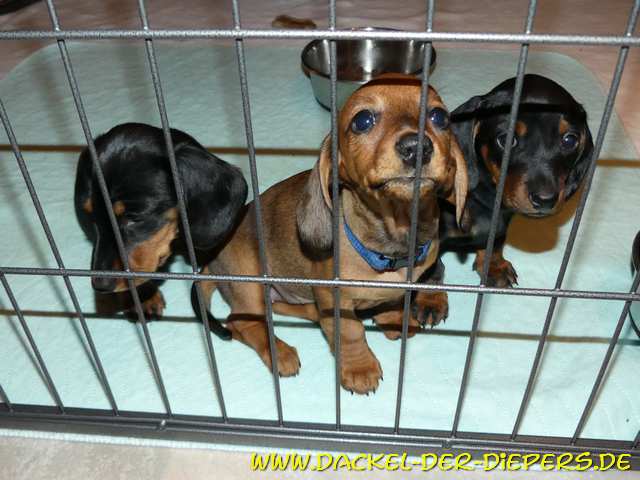 Die Kleinen sind weiter gewachsen, werden langsam richtige Hunde. Sie sind viel im Garten und haben einen heiden Spass am entdecken, auch wenn das Wetter mal nicht so passt. Nur so entwicklen sie eine gute Konstitution und Abwehr. Die Welpen sind nun gechipt und haben gestern auch die erste Impfung ganz gut überstanden. Etwas müde für ein paar Stunden waren sie heute alle wieder putzemunter. Mit grossem Apetit futtern sie jetzt ihr Hundefutter: ein gute Trockenfutter, eine gute Dose, aber auch frisches Fleisch mit Gemüse wird inhaliert und weggeputzt. Langsam werden die Koffer gepackt - die Kleinen bekommen ein umfangreiches Starterpaket mit. In einer Woche geht es los, die neuen Besitzer freuen sich sehr und können es kaum erwarten... Für unser Möhrchen, eine rote Hündin suchen wir noch ein schönes aktives Zuhause. Ein paar Anfragen gab es natürlich, aber ein Dackel ist kein Hund für die Couch oder um 8 Stunden allein zu bleiben. Gerade das Möhrchen freut sich auf ein munteres Leben, gern auch als Zweithund. Das ist sie! ![]() ![]() ![]() ![]() ![]() Mia ![]() ![]() Möhrchen ![]() ![]() Maika und Mia ![]() ![]() ![]() ![]() ![]() Disney und auch Lucy spielen gern mit den Welpen und passen auch gut auf ![]() ![]() ![]() ![]() ![]() ![]() ![]() ![]() ![]() ![]() Möhrchen und Miss America ![]() Mathilda ![]() ![]() ![]() ![]() Das ist mein Knochen ![]() ![]() ![]() ![]() ![]() Mathilda ![]() ![]() ![]() ![]() ![]() ![]() ![]() ![]() ![]() Eingeschlafen... ![]() ![]() ![]() ![]() ![]() ![]() Mephisto "Gustl" ![]() ![]() ![]() ![]() Mathilda ![]() ![]() ![]() ![]() Maika ![]() ![]() ![]() ![]() ![]() ![]() ![]() Mia ![]() ![]() ![]() ![]() Ätsch ![]() ![]() ![]() ![]() Miss America Sie wird nun offiziell Miss Wilhemina heissen, weil sie einen deutschen Namen bekommen soll. Gerufen wird sie dann wohl Minnie Minnie wird noch bis Mai bei uns bleiben Erst dann geht die weite Reise in die USA ![]() ![]() ![]() ![]() ![]() ![]() ![]() Möhrchen ![]() ![]() ![]() ![]() ![]() ![]() ![]() Unsere Emma ist im Endspurt. Nächste Woche werden wir wissen was sie uns in die Wurfkiste legt. Es geht ihr gut. Wir wünschen uns eine unkomplizierte Geburt für sie. ![]() ![]() Extra Schmuseeinheiten werden immer gern genommen. ![]() |