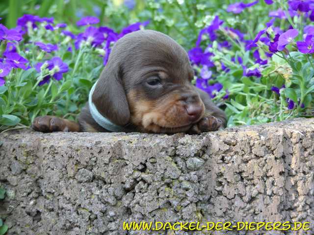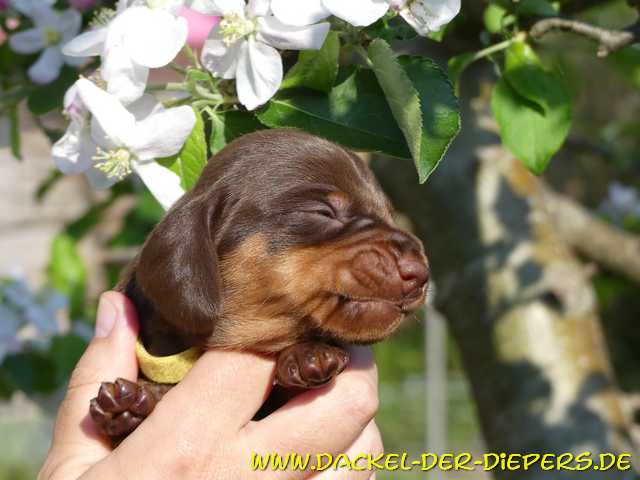 Unser P-Wurf bekommt seine Namen erst, wenn sie definitiv ausgesucht werden. Die zukünftigen Besitzer dürfen gern ein wenig mitbestimmen. Wird der Rufname aber ein ganz anderer, bestimmen wir den Namen für die Ahnentafel. Eine kleine Auswahl der Ideen lautet: Paulinchen/Prinzessin Pauli Paul-Hugo, Piccolino, Picasso, Puck, Purzel... Leben im Garten, wenn es denn nicht schon zu warm ist. Heute waren die Kleinen, jetzt 2 Wochen jung, das erste mal länger draussen. Im geschützten Nest und Markise von oben liess es sich gut aushalten. ![]() Emma hatte erst etwas Sorge, ob es sicher genug für ihre Brut ist, entspannte dann aber auch schnell. ![]() Denen ging es aber auch wirklich sehr gut. ![]() ![]() ![]() ![]() seeliges Rudelkuscheln... ![]() ![]() Immer noch wird überwiegend geschlafen... In dieser Woche haben alle die Augen geöffnet, die Hündin witzigerweise als letztes. Sagt man den Mädels doch eigentlich eine angeborene Neugierde voraus. Noch blinzeln aber alle noch ins ungewohnte Helle, daher sieht man auf den Portraits schonmal den einen oder anderen etwas schiefen Blick. Rüde - gelb 803g ![]() noch sind die Schnautzen kurz und schrumpelig ![]() ![]() ![]() Hündin 746g ![]() ![]() ![]() Rüde blau 835g ![]() ![]() ![]() ![]() ![]() Rüde schwarzrot 725g ![]() ![]() ![]() ![]() ![]() ![]() Rüde hellblau (ehemals türkis) 656g ![]() ![]() ![]() ![]() ![]() Rüde schwarzrot 881g fürs Foto aus dem Schlaf gerissen ![]() aber jetzt bin ich wach ![]() ![]() ![]() ![]() ![]() |