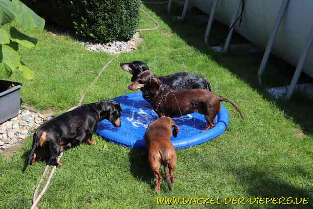 Das größere Gehege kommt, die Wurfkiste ist zu klein, die kleinen Racker werden mobiler ![]() Ohne zu meckern wurde die Veränderung sofort akzeptiert ![]() ![]() ![]() Auch neu, Milch vom Teller! ![]() Waldfee macht den Anfang ![]() Und dann kam Winnie! Schon das selbe Schauspiel: wie unmittelbar nach der Geburt weiß Winnie wo es lang geht und lässt sich von da an nicht mehr aufhalten. ![]() ![]() ![]() Die Schlacht am kalten Büfett ![]() ![]() ![]() Auch den Großen war heute viel zu warm und sie nahmen das neue Spielzeug, den Wassersprenkler, gern an. ![]() ![]() Portraits: Waldfee, unsere kleinste ![]() ![]() ![]() Winnie ![]() ![]() Wolfi - Wotan Spitzname "WoWo" ![]() Nummer 4 ![]() ![]() ![]() ![]() Nummer 5 ![]() ![]() ![]() Wolke ![]() ![]() Alle Welpen sind bereits reserviert. Hubert Remmelberger, in 84529 Tittmoning, hat am 11.08. Welpen bekommen. 4 Rüden und 4 Hündinnen Kurzhaardackel Standard in schwarzrot Tel: 08683-335 Email: hubert.remmelberger@t-online.de |