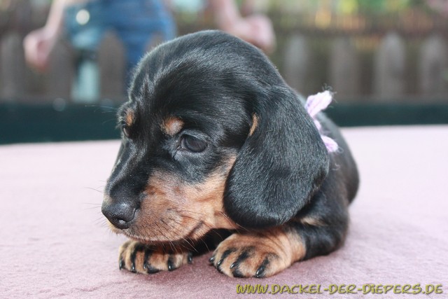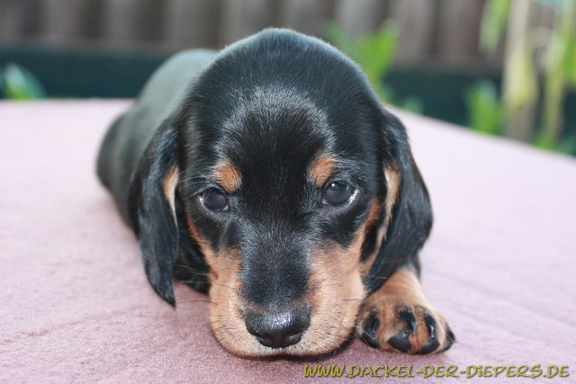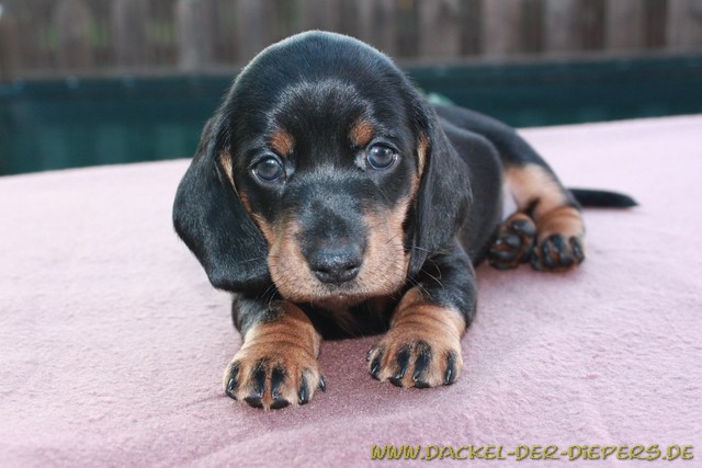 Vierte WocheNeue Einzelaufnahmen von unseren Zwergen:unsere Prinzessin Amica ![]() Sie ist schon eine kleine Persönlichkeit mit ihrem eigenen kleinen Köpfchen ![]() Anton, unser Clown. Er ist immer gut gelaunt und scherzt bei jeder Gelegenheit mit uns. Seine zukünftigen Besitzer hat er schon voll um den Finger gewickelt. Ganz Dackel halt..... ![]() ![]() Aramis ist ein ganz feiner Welpe. Anfangs war er sehr zurückhaltend, aber der Status, dass er etwas kleiner ist als seine Brüder hat ihm sehr gut getan. Das viele Extraknuddeln hat ihn stark werden lassen. Jetzt am Napf mit dem "richtigen Hundefutter" ist er an vorderster Front. ![]() "Schaut: ich kann schon ganz gefährlich sein!" ![]() "...aber auch wieder ganz lieb!" ![]() ![]() Prinz Arno II. hier noch ganz müde ![]() "Na gut, dann schau ich auch mal ganz schön!" ![]() Arno und Aramis suchen noch ein liebevolles und artgerechtes Zuhause Nein, Minka steht natürlich nicht zur Vermittlung!!! Aber bei den ganzen Dackelaufnahmen wollte sie auch mal wieder im Mittelpunkt stehen und den Welpen zeigen, wie man sich gut positioniert. ![]() "Ich bin eh die Schönste!" ![]() Felix mit "seinem" Anton und Karla, die absolut einverstanden ist, dass Anton zu ihm zieht. So kann sie ihren Sohn hin und wieder sehen. ![]() Arno sehr entspannt ![]() Amica auch, aber etwas bedeckt... ![]() Das mit den Käfigstäben ist ihnen so gar nicht recht! ![]() ![]() |