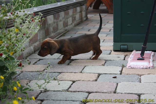 Diese Woche wurde die Küche entdeckt. Da das Wetter nicht sehr einladend für den Garten ist, spielen die Kleinen jetzt auch viel in der Küche. Für uns bedeutet das jetzt, dass wir nur noch mit vorsichtigen Schlurfschritten vorwärts kommen. Aber sobald es nicht regnet, sind die Welpen noch lieber im Garten. müde gespielt... ![]() ![]() 3 kuscheln zusammen.... ![]() der vierte wohl lieber allein..... ![]() Wir haben jetzt viel Regen, dann ziehen sich die Kleinen zurück ins Trockene... ![]() ![]() Daisy ![]() Dino mit "Windpocken" ![]() Fritzi ![]() Disney ![]() ![]() ![]() ![]() ![]() toben, toben, toben... ![]() ![]() ![]() Hausarbeit.... ![]() ![]() Dino ![]() ![]() Karla spielt jetzt gern mit, die Milchbar ist geschlossen ![]() Weiterhin wird der Garten auf den Kopf gestellt und genau untersucht ![]() Mama Karla spielt und erzieht ![]() Oh, das weitere Haustier der Familie wird kennengelernt... ![]() Die Bekanntschaft mit dem unbekannten Wesen Katze Disney, absolut furchtlos... ![]() Aber Dackelchen sollte bald die Sprache der Katze verstehen, denn das hier bedeutet: "Du nervst, kleine Kröte!" ![]() Disney, achte auf die Ohren! Das bedeutet: ich verstehe gerade keine Dackelscherze! ![]() Minka warnt, aber ohne Krallen. Eigentlich ist sie recht gnädig - macht sie doch diese Welpenzeit auch schon einige Male durch ![]() Dieser Himbeerast war da im Weg, das Personal hat wieder nicht aufgeräumt.... ![]() Disney pirscht sich an das Gebüsch heran, indem immer der Frosch sitzt ![]() ![]() Amica Die Welpen inspizieren ihre noch geschlossene Milchbar, was sie aber nicht begeistert ![]() Fritzi ![]() ![]() Disney ![]() Daisy ![]() Daisy ![]() ![]() ![]() Dino ![]() ![]() ![]() ![]() Der Teich zieht die Kleinen magisch an, aber das Wasser dort schmeckt auch besonders gut. ![]() "Pass auf, dass du da nciht wieder reinplummst!" ![]() "Du sollst doch aufpassen! Einmal rette ich dich noch" ![]() Dino macht einen auf "böser Hund" ![]() ![]() ![]() ![]() Dino ![]() Fritzi (Daxx) bekommt wieder Besuch ![]() ![]() Karla wird schmaler und Amica rundet und rundet sich ![]() ![]() ![]() ![]() |