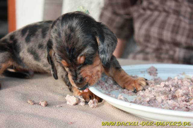 Die Zeit verrennt wie im Flug. Schon bald werden die Kleinen richtig munter. Aber auch Schlaf ist nach wie vor sehr sehr wichtig um Kraft fürs Grosswerden zu sammeln. ![]() ![]() ![]() ![]() Mama Karla macht ihren Job noch sehr gut. Aber es naht auch der Zeitpunkt, dass die Welpen beigefüttert werden sollten, um eine gleichmässige Gewichtssteigerung sicher zu stellen. ![]() Heute war es dann soweit: Mit 3,5 Wochen gibt es die erste grosse "Raubtierfütterung" Aber erstmal raus an die frische Luft. Heute war es endlich mal frühlingshaft warm. ![]() Und endlich wieder Einzelbilder Franzi (blau)- reserviert ![]() ![]() ![]() ![]() "oh, was ist das?" ![]() lecker!!! ![]() klappt schon ganz gut - futtern vom Teller ![]() Rüde "Faust" (Grün) drückt schonmal ein Auge zu ;-) ![]() ![]() ![]() ![]() ![]() Mädel "Felicia" (Rosa) - reserviert ![]() ![]() ![]() ![]() ![]() ![]() Schwarz-roter Rüde, der kleinere "Falco" - vorläufig reserviert ![]() ![]() ![]() ![]() ![]() ![]() ![]() ![]() ![]() ![]() ![]() Rüde "Floyd" (Gelb) ![]() ![]() ![]() ![]() ![]() ![]() ![]() ![]() Mädel "Filia"(Orange) ![]() ![]() ![]() ![]() ![]() ![]() der grössere der beiden schwarz-roten Rüden "Felippe" - vorläufig reserviert ![]() ![]() ![]() ![]() ![]() ![]() ![]() ![]() ![]() Rüde "Freud" (Hellblau) ![]() ![]() ![]() ![]() ![]() ![]() ![]() Auch Freud findet sogleich Geschmack an dem neuen Futter ![]() ![]() bisschen Kleckerei bleibt nicht aus... ![]() ![]() ![]() ----- ![]() Vorläufig reserviert bedeutet: es gibt gezielte Anfragen für diesen Hund, aber noch keine feste Zusage Reserviert bedeutet: dieser Hund ist fest ausgesucht |
