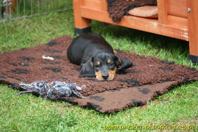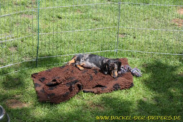 Endlich ist auch der Tag für Hannibal und Linda gekommen Hannibal zieht nach Abzug des Hochwassers im Osten von Deutschland in sein neues Zuhause, wo er schon lange und sehnsüchtig erwartet wurde ![]() ![]() Hannibal gefällt es auf dem Schoss vom neuen Frauli ![]() ![]() "Hey, spiel noch mal mit mir. Ich muss gleich lange Stunden im Auto sitzen" Für die meisten unserer Welpen ist das kein Problem, weil wir immer wieder auch mit den ganz Kleinen schon kürzere Fahrten unternehmen, damit sie sich daran gewöhnen, dass Autofahren nicht immer gleich der Gang zum Tierarzt bedeutet. ![]() ![]() ![]() ![]() Filia ![]() ![]() ![]() ![]() -------------------- So, wieder ein Meilenstein geschafft! Am Donnerstag war Wurfabnahme durch den Zuchtwart. Da ich zwar im März meine Prüfung zum Selbigen bestanden habe, aber natürlich nicht meinen eigenen Wurf protokollieren darf, kam zu mir der Landes- bzw. Bundeszuchtwart. Es stand nämlich noch die Zertifizierung als ID-Beauftragter an. D.h., dass ich einmal unter seinen Augen die Welpen gechippt habe, damit ich das zukünftig auch darf. Also war ich natürlich doppelt aufgeregt. Den eigenen Welpen die relativ dicke Applikationsnadel unter die Haut zu setzen erfordert anfangs schon etwas Überwindung. Aber: Oh Wunder - es haben alle 8te überlebt - und ich auch..... Die restliche Überprüfung des Wurfes ergab ebenfalls keine Beanstandung. D.h.: das Welpengebiss ist in Ordnung und vollständig, wir haben keine Nabelbrüche, die Rute wird kontrolliert, beim Rüden die Hoden.....Die Welpen machten insgesamt einen sehr guten Eindruck. Nun können wir den Antrag auf Zuchtbucheintragung und den Erhalt der Papiere beantragen. Aber nach soviel theoretischen Geschwafel natürlich lieber der Eindruck per Foto...... ---------- am 28.05. aktualisiert Wie man sieht, können auch unsere grossen Hunde hin und wieder noch kindliche Anwandlungen bekommen. Naja, langweilig wird uns eher selten.... ![]() Abholung von Flori "Tschüss, mein grosser Kleiner! Bleib anständig und hab ein langes und gesundes Leben. Lass mal hin und wieder von dir hören, wie dir dein Leben gefällt" ![]() Wasser schöpfen am Teich - Teichwasser ist und bleibt am leckersten. ![]() ![]() Emma mit Hannibal Die Stammplätze der grossen werden für gut befunden und okupiert. ![]() Hannibal... ![]() ... mit Karla ![]() Felicia, Emma und Faust ![]() ![]() ![]() Endlich scheint mal wieder die Sonne.... ![]() Amica ![]() ![]() Und Einzelbilder: Felicia Sie wird wohl das blaue Auge behalten. Das ist die willkürliche Tigerung. Auf das Sehvermögen hat das überhaupt keinen Einfluss. ![]() ![]() ![]() Hannibal ![]() ![]() ![]() ![]() Faust Er ist im Rudel der etwas ruhigere Pol, zieht sich auch gern mal alleine zurück Er ist sehr auf uns Menschen fixiert und hört sogar schon auf seinen Namen. Wir nennen ihn allerdings "Fausti oder Fäustchen" ![]() tolles Profil ![]() ![]() ![]() ![]() ![]() den Dackelblick hat er jedenfalls schon perfekt drauf ![]() Versuch eines Standbilds ![]() ![]() ![]() ![]() ![]() -------- am 21.05. aktualisiert: Die ersten Welpen haben bereits ihr "Elternhaus" verlassen und wir haben schon zufriedene und glückliche Rückmeldungen erhalten. Das freut das Züchterherz natürlich sehr. die folgenden Aufnahmen schon in deutlich reduzierter Anzahl... ![]() Felicia, Faust und Flori ![]() Felicia ![]() Flori ![]() "Budenzauber" in ihrer Hütte sind sie wirklich gern ![]() Hannibal und Filia ![]() Faust in Lauerstellung ![]() Die Welpen sind jetzt fast ausschließlich im ganzen Garten - natürlich immer unter Aufsicht. Es lauern doch hier und da Gefahren, dass sie irgendwo abstürzen oder giftiges Grün aufnehmen. Aber auch das müssen sie lernen, dass eine Ermahnung ankommen soll. ![]() Felicia ![]() ![]() Flori - immer neugierig er ist ein munteres Kerlchen, sehr aktiv ![]() Disney wird nicht müde, auf ihre kleinen Halbgeschwister aufzupassen. ![]() ![]() Mable wird abgeholt Die erste Rückmeldung war sehr schön. So umtriebig Mable ist, so scheint sie auch sehr intelligent zu sein und ihre neue Umgebung innerhalb weniger Stunden "eingescannt" zu haben, dass sie bereits weis, dass das Haus mehrere Eingänge hat, welche ihr nicht alle zustehen. ![]() Tja und dann waren sie nur noch zu viert und schauten wirklich etwas belämmert.... Flori wird auch bald abgeholt, dann folgt Felicia und Hannibal bleibt noch etwas länger. Für den lieben Faust suchen wir noch ganz besonders nette Menschen, die ihn genauso toll finden wie wir. ![]() Sozialisierung mit unserem Rudel.... ![]() Emma bestimmt hier genau, wer noch in den Korb darf und wer nicht. ![]() Und am Ende siegen dann doch die Kleinen, eine zufriedene Bande ![]() Falco wurde sehnsüchtig erwartet und der Tag war für die Kinder aufregend und lang. ![]() Aber nach der langen Heimfahrt war wieder Kraft und Schwung die neue Umgebung zu inspizieren ![]() ![]() ....und am übernächsten Tag wartete schon der erste grosse Ausflug auf unseren Kleinsten Da Falco mal Jagdhelfer werden soll, ist es nie zu früh, ihn die Gerüche, das Adrenalin und den Ablauf eines Ansitzes erfahren zu lassen Wie wir sehen, veschläft er allerdings seinen ersten Kontakt mit dem Wild - ganz entspannt! ![]() ------------------------ Faust ![]() Hannibal ![]() Flori ![]() Felicia und Hannibal ![]() Faust, total relaxed.... ![]() Flori ![]() Flori mit einen Stück Dörrfleisch. Das knabbern sie sehr gern. ![]() ![]() Freud und Faust ![]() Und heute zog auch schon der erste Welpe in sein neues Leben. Freud machte den Anfang. Sein Frauchen studiert Forstwirtschaft und er wird ihr Begleiter im Wald, unterm Schreibtisch und auf der Couch... Wir wünschen den beiden viel Freude miteinander und ein aufregendes Leben! ![]() ![]() |